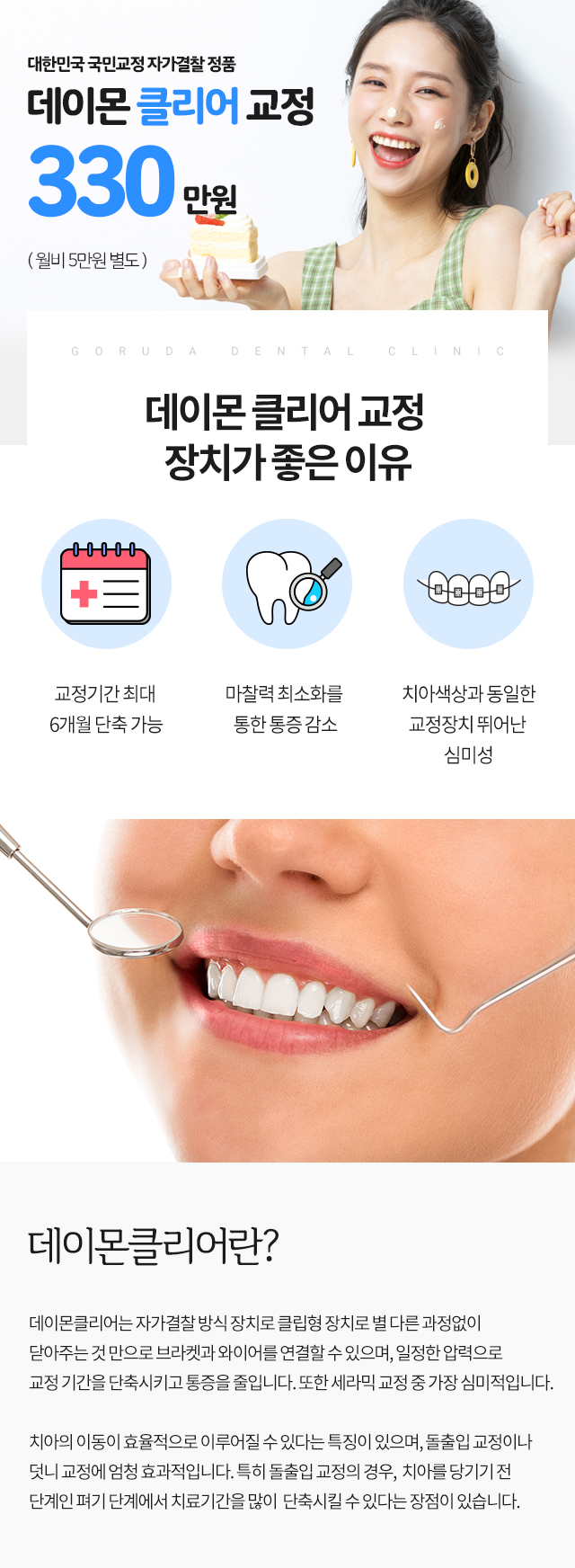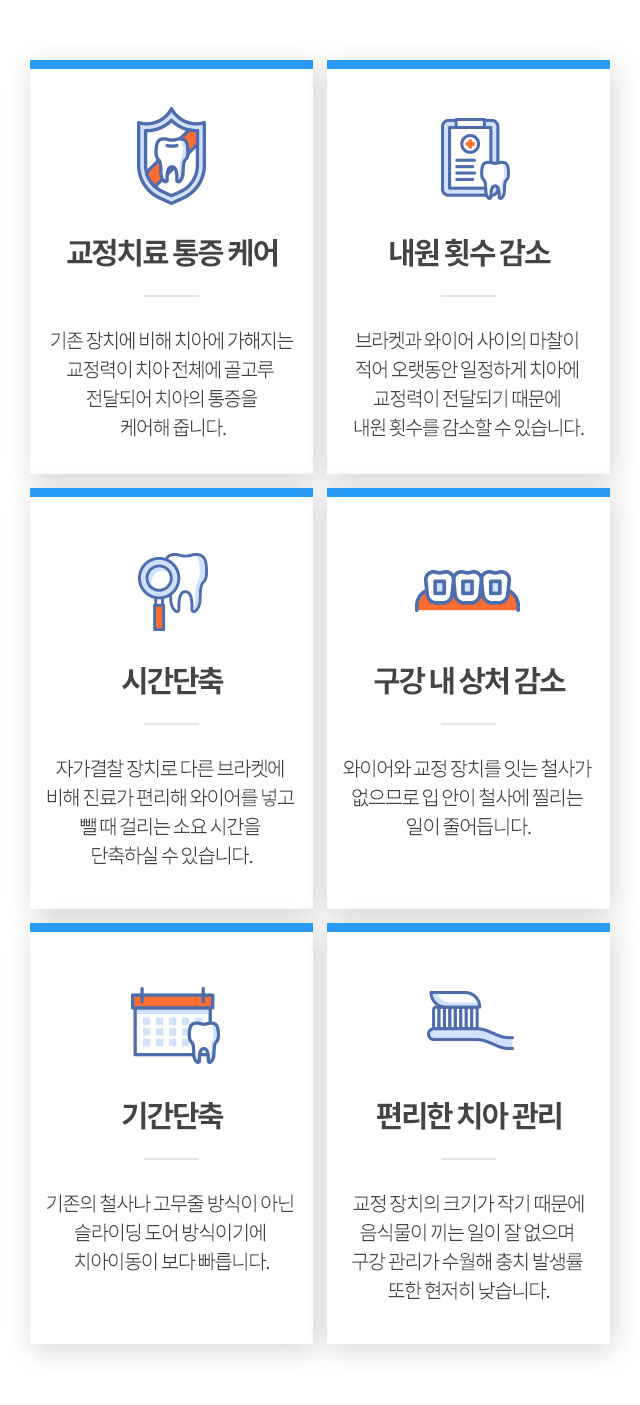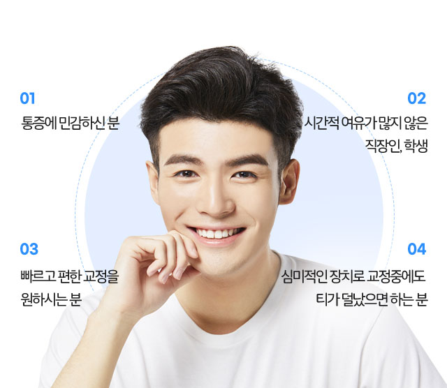 자가결찰식 교정 장치로, 가장 심미적이고 투명하게 빛나는 장점이 있습니다.