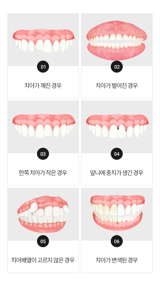 모양, 크기, 색상 등의 개선을 할 수 있기 때문에 앞니 크기가 크거나